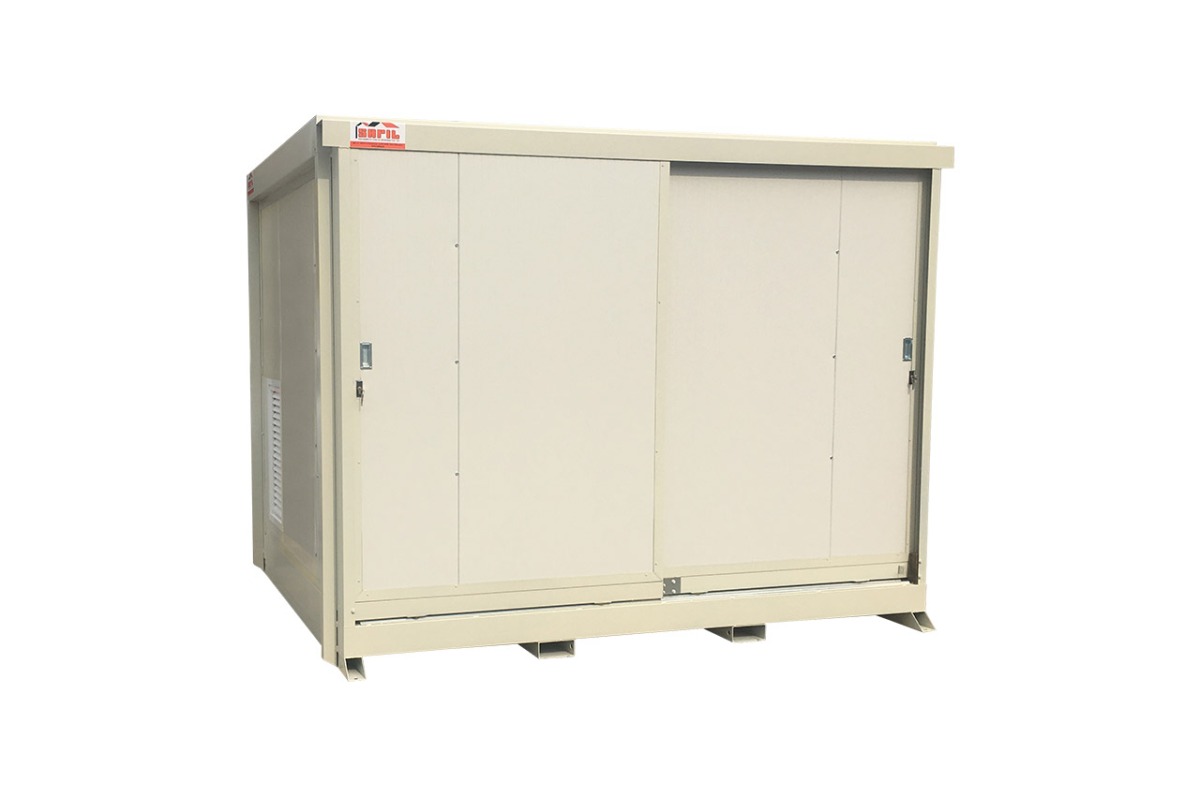 - Movimentazione con carrello elevatore dotato di prolungamento forche e di portata adeguata oppure con gru con aggancio dal basamento (esclusivamente a container vuoto);